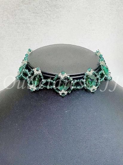 エメラルドビーズで首元を華やかに彩り、社交ダンスに必要なクリエイティブな自己表現を後押し。正装ドレスやパーティ用ワンピースにもぴったりです。