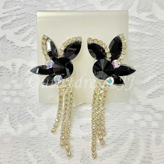 ジェット×ゴールドチェーンイヤリング 699