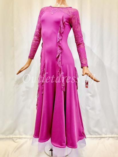 レースをふんだんに使用したワンピースです。曲線的なデザインが優美な動きを出してくれます。