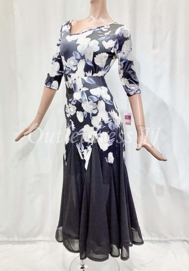 大胆な花柄が目を引くセットアップです。トップスは安定感のあるレオタード式になっております。。