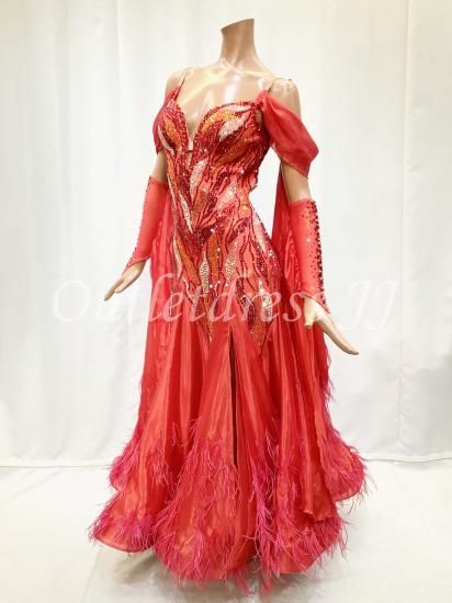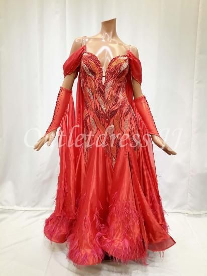 【USED】海外選手着用 スタンダードドレス フラメンコ羽 Mサイズ