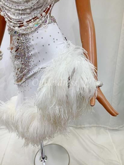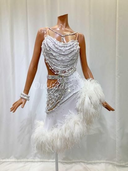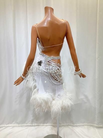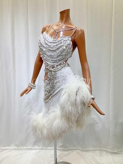 【レンタル】ヨーロッパ製ラテンドレス L0454 ホワイト羽 Sサイズ