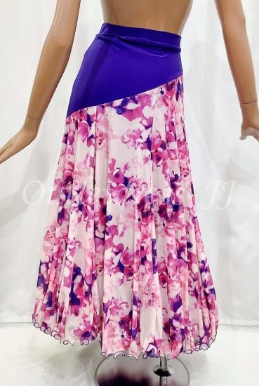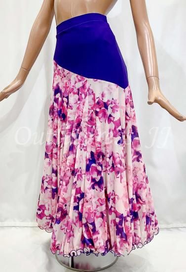 【20%OFFSALE】メッシュプリントフレアスカート パープル×ピンク花柄 Fサイズ