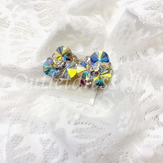 スワロフスキーのストーンを贅沢に使用したエレガントなデザインのイヤリングです。
