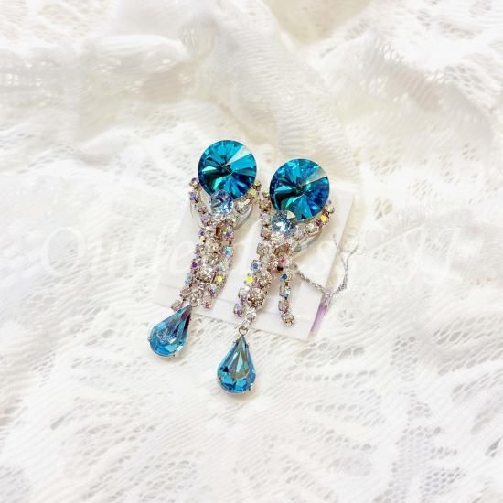 スワロフスキーのストーンを贅沢に使用したエレガントなデザインのイヤリングです。
