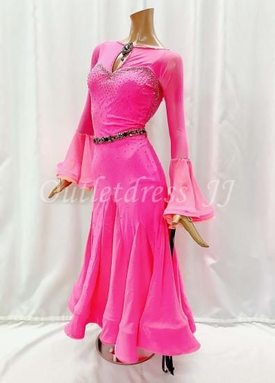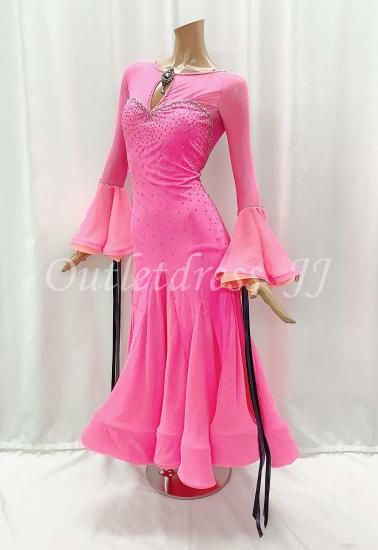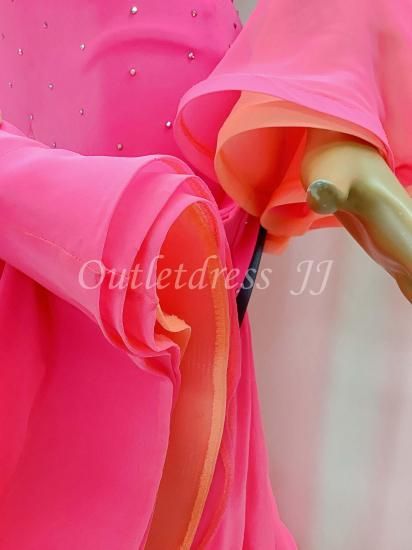 鮮やかなセリースのドレスです。裾と手首に重ねた生地の一番下はオレンジ色で美しい立体感を感じさせます。